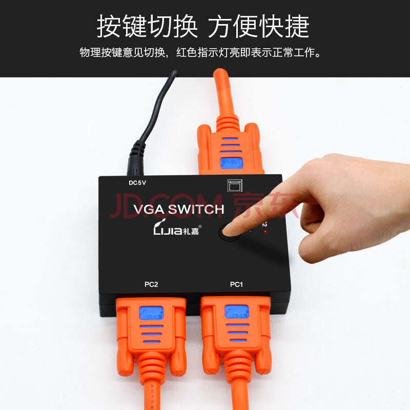 商品相册:礼嘉 两口VGA切换器 二进一出 VGA宽频 高清投影视频切换器 手动智能开关控制2进1出显示共享器转换器 LJ-21V第