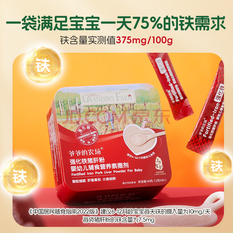 商品相册:爷爷的农场强化铁猪肝粉礼盒装40g*2盒 宝宝6个月以上辅食添加儿童拌饭料第