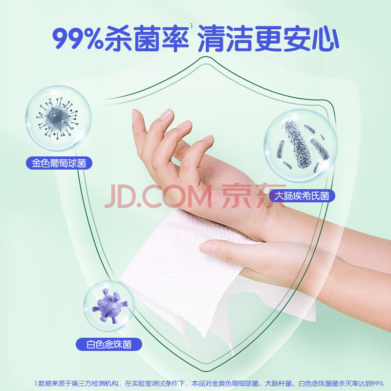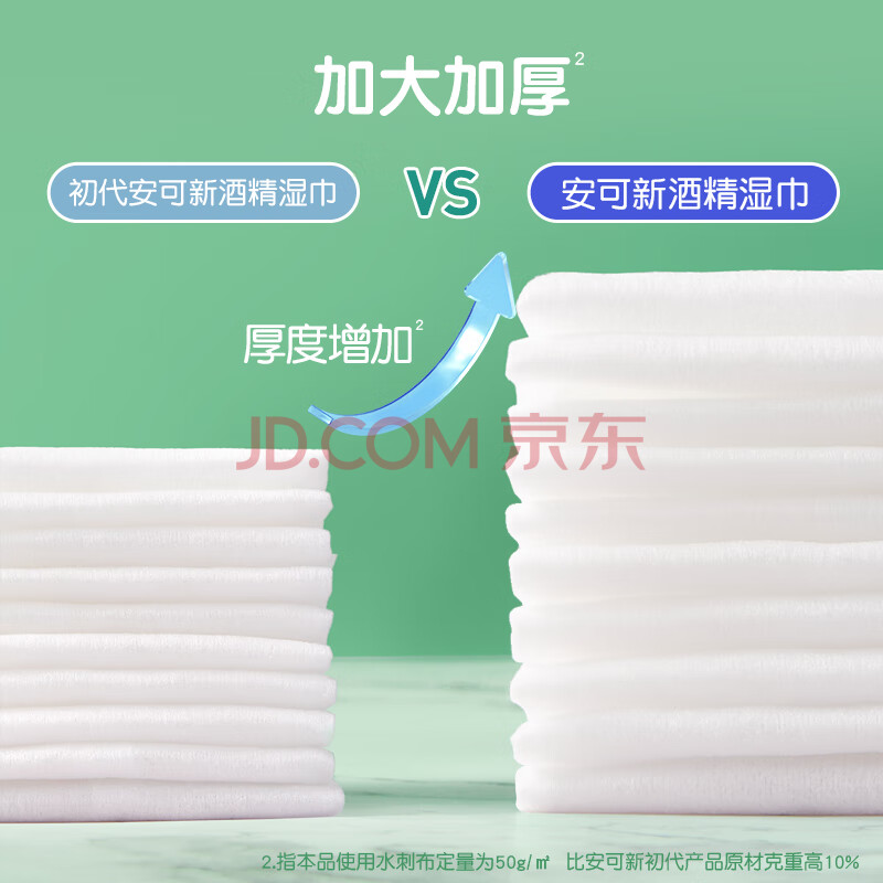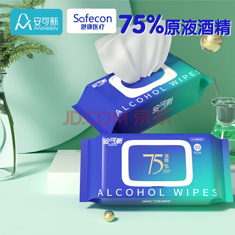 商品相册:安可新 75% 酒精湿巾【80抽*2包】一次性杀菌清洁湿纸巾酒精棉片18x14cm第