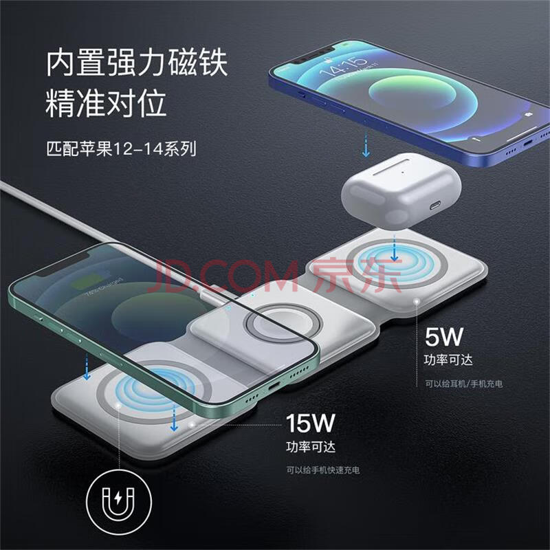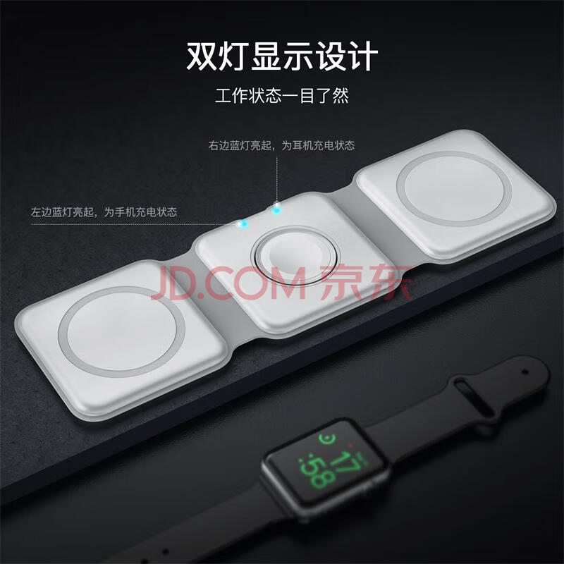 商品相册:孜泰 三合一折叠磁吸无线充电器苹果Magsate15W快充iphone17/16/15/14/13/Airpods耳机/iWatch手表W07第1张/共8