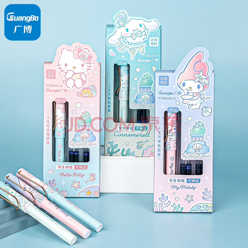 商品相册:广博(GuangBo)三丽鸥联名钢笔套装 儿童三年级玉桂狗凯蒂猫卡通练字中小学生文具EF尖颜色随机发 KT86231第