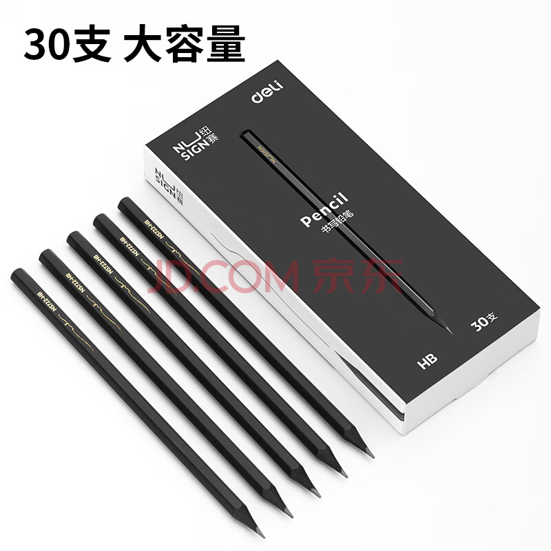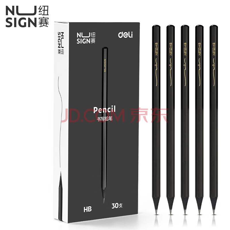 商品相册:纽赛(NUSIGN)黑木石墨书写铅笔装六角笔杆考试美术生素描专用 30支NS723-HB【热门商品】得力旗下高端品牌第