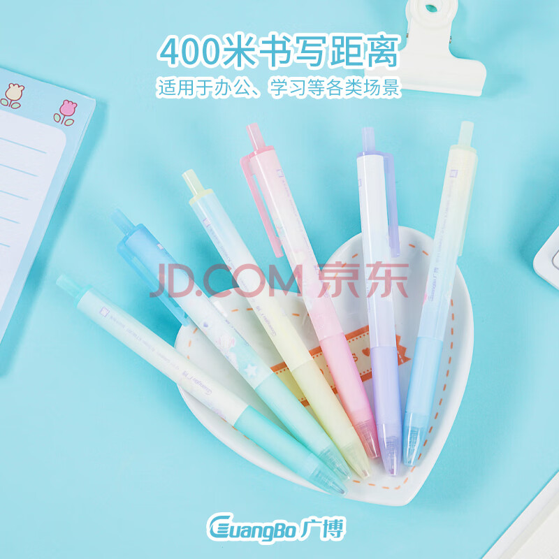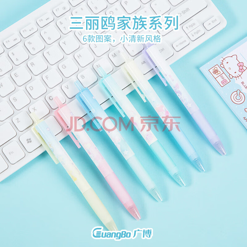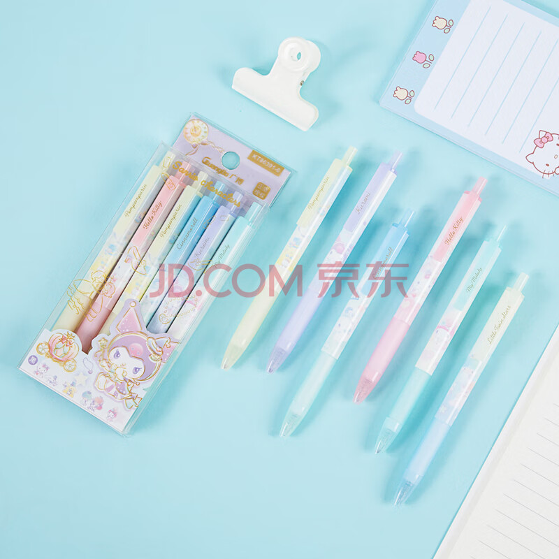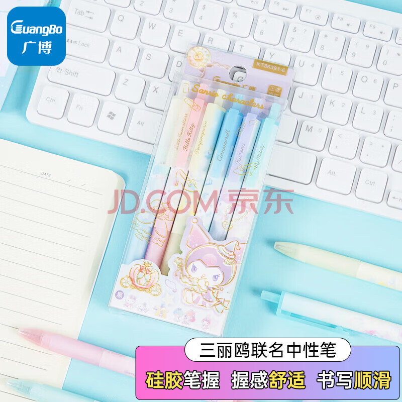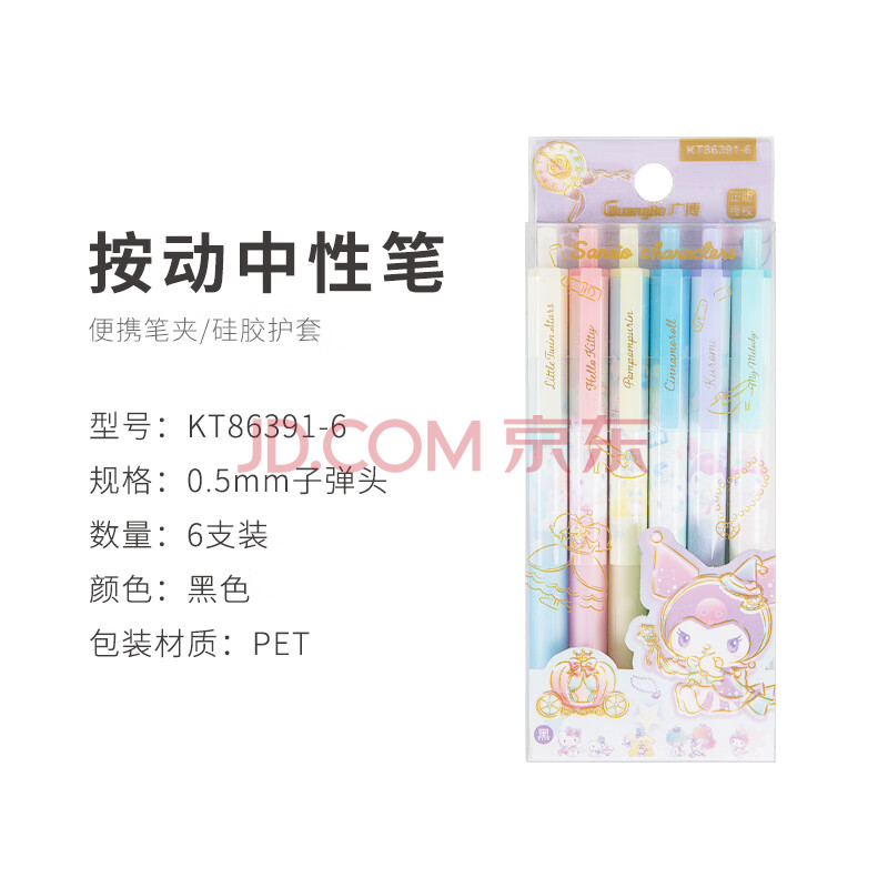 商品相册:广博三丽鸥联名按动中性笔 清新设计签字笔水笔0.5mm黑色软胶护套按动笔6支装 KT86391第