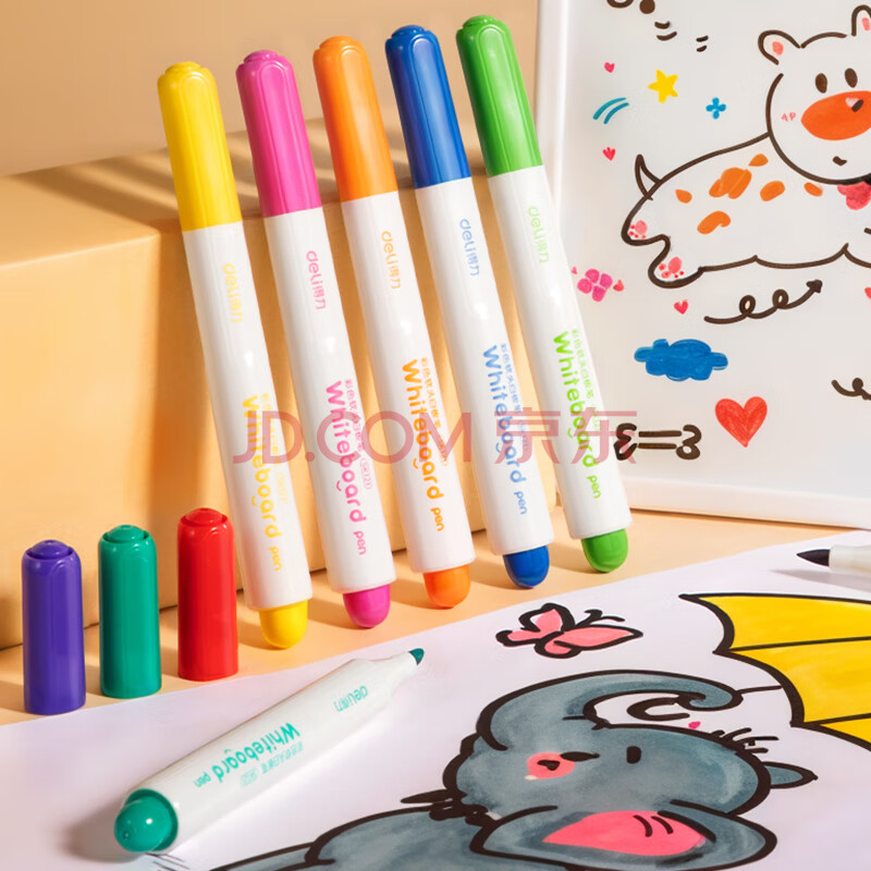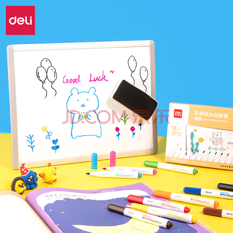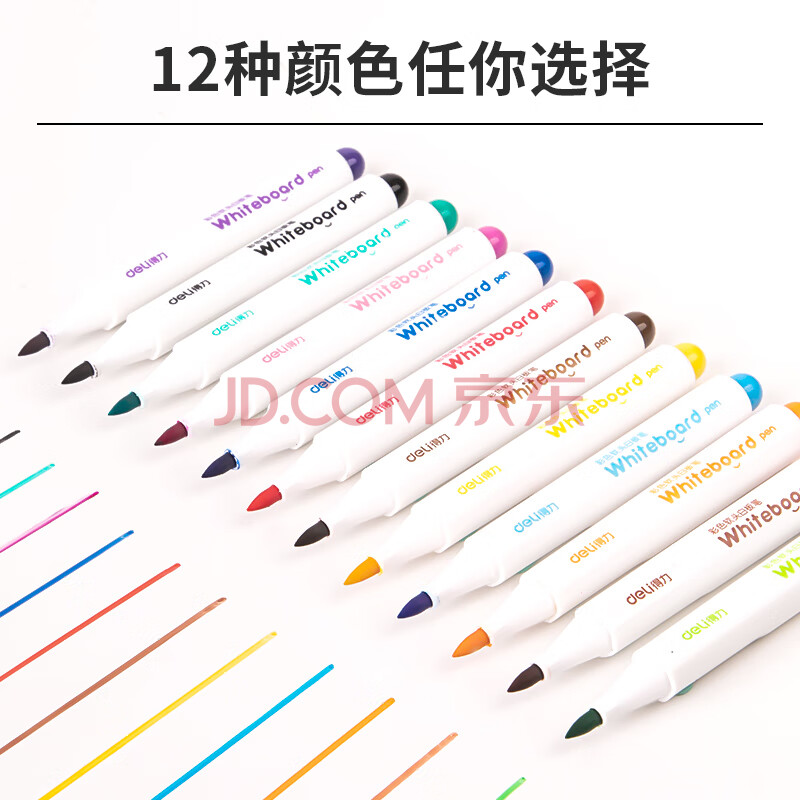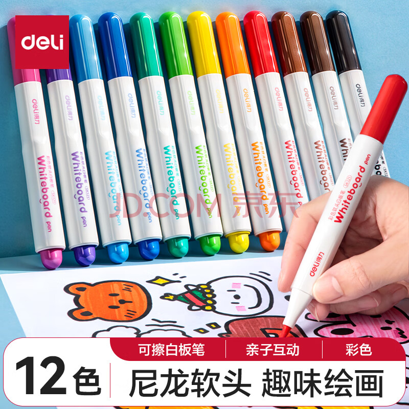 商品相册:得力(deli)儿童彩色可擦白板笔益智文具套装 马克笔水彩笔老师推荐涂鸦绘画 12支/盒 SK121 儿童节礼物第
