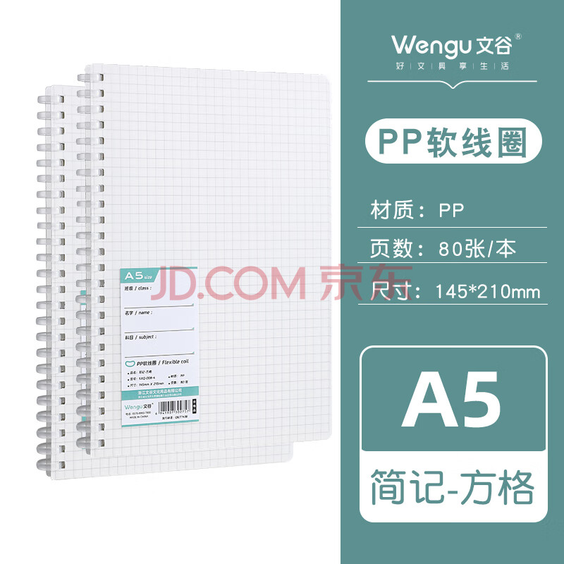 商品相册:文谷(Wengu)笔记本 80张方格软线圈本文具简约小本子高颜值大学生作业本办公工作记事本 A5方格/2本/SXQ-008-4第