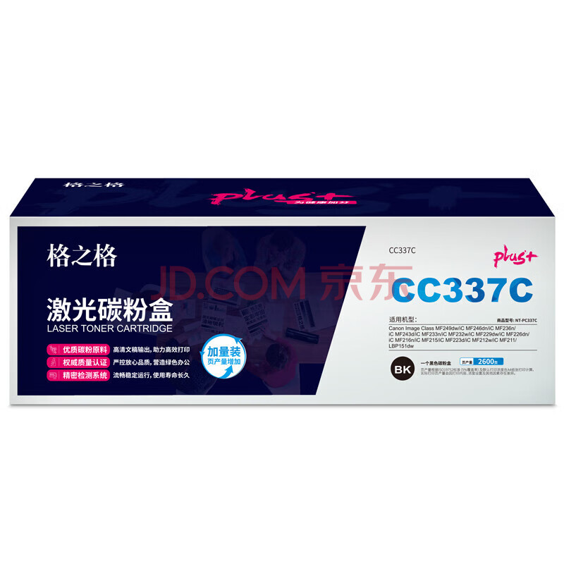 商品相册:格之格NT-PC337Cplus+ 硒鼓 2600页(单位:支) 适用佳能CC337C硒鼓 佳能MF229dw MF216n MF222dw MF217w 黑色#第