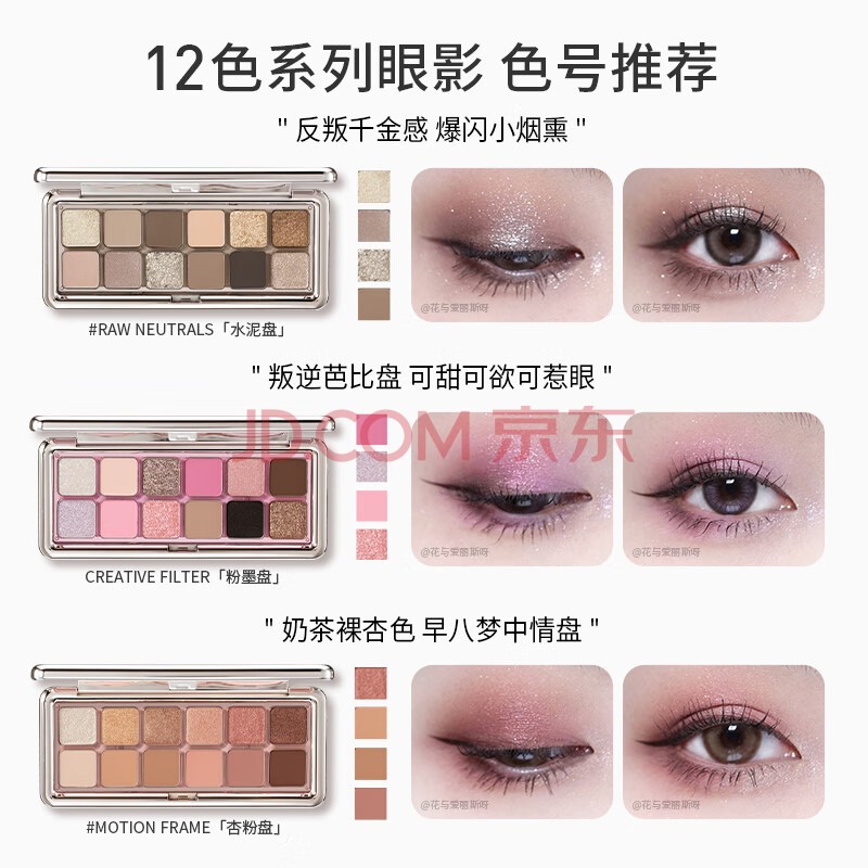商品相册:3ce12色眼影大地原棕RAWNEUTRALS水泥盘哑光生日礼物送女友第