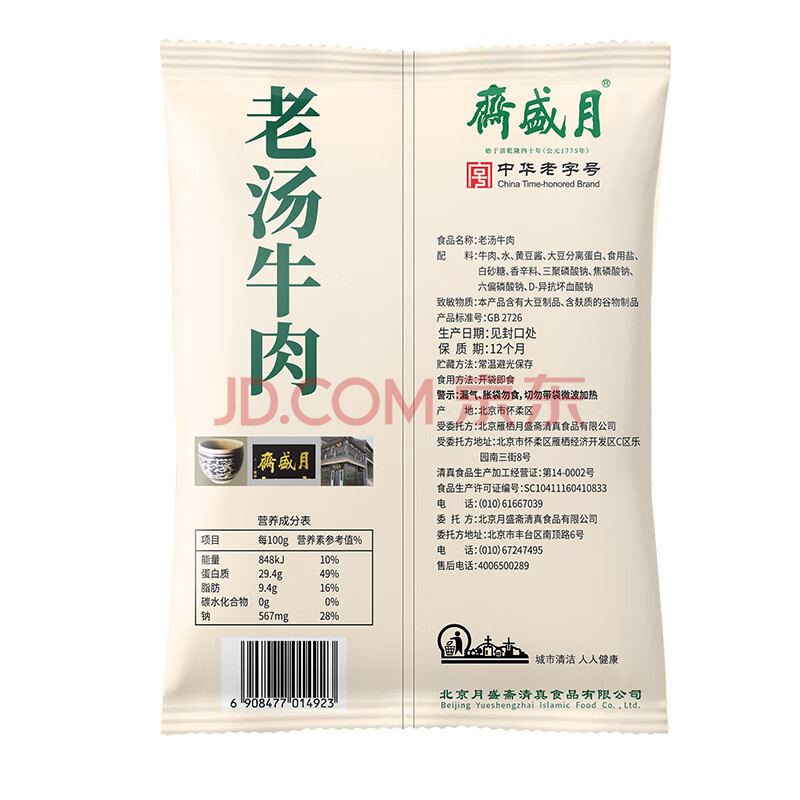 商品相册:月盛斋 清真牛肉 中华老字号 酱卤熟食牛肉零食 老汤牛肉100g 开袋即食第