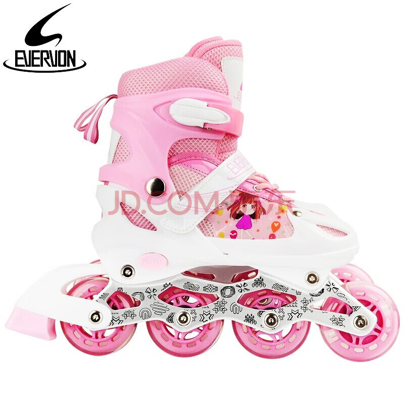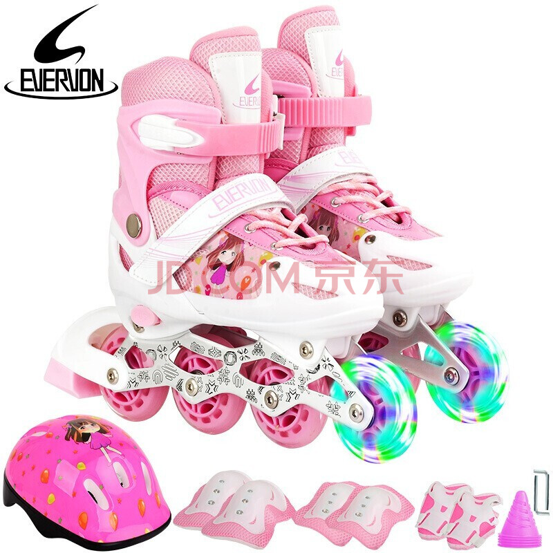 商品相册:EVERVON轮滑鞋儿童溜冰鞋男女童旱冰鞋337粉色附护具头盔S号适31-34码第