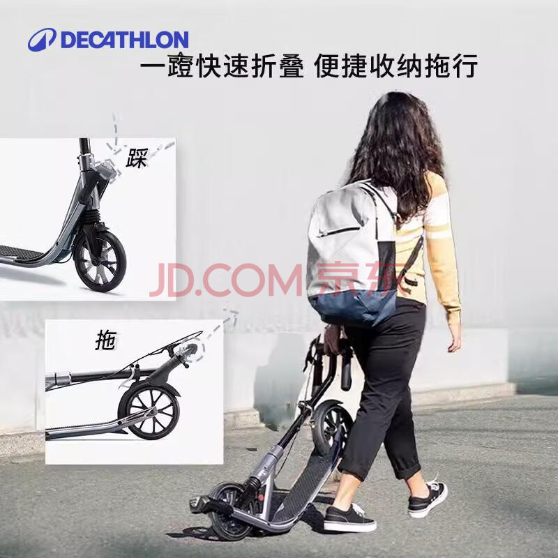 商品相册:迪卡侬成人两轮滑板车可折叠避震车通勤便携代步车C900太空灰4392758第1张/共5