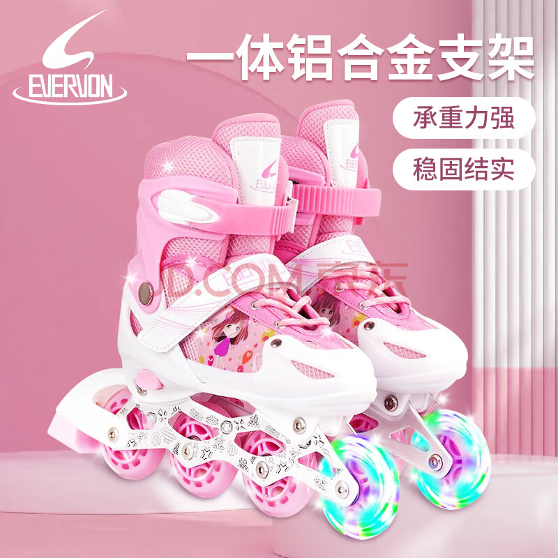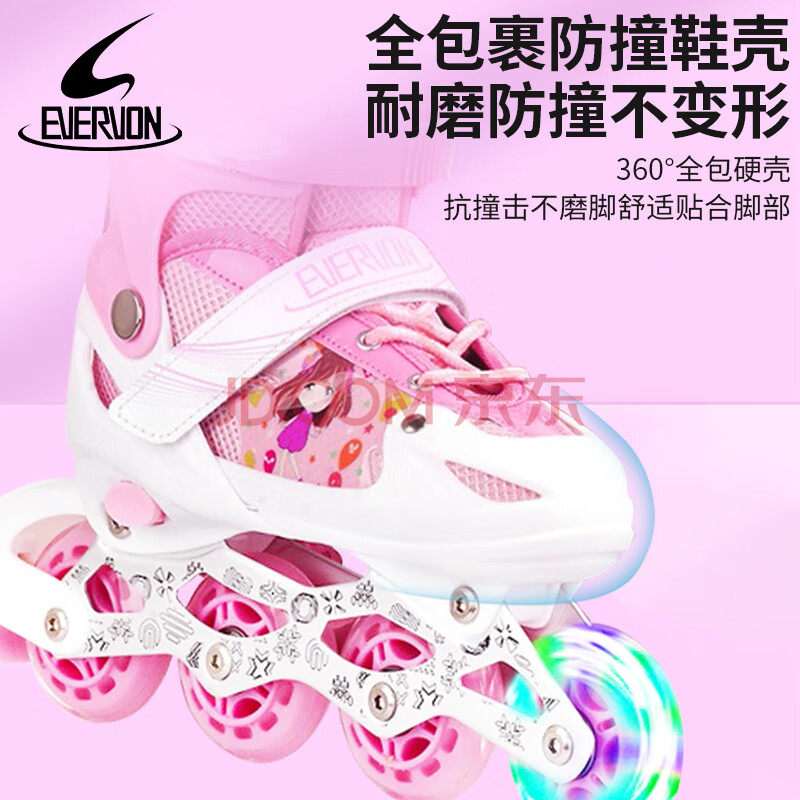 商品相册:EVERVON儿童轮滑鞋初学者男童女童溜冰鞋闪光轮旱冰鞋尺码可调节 337粉M第