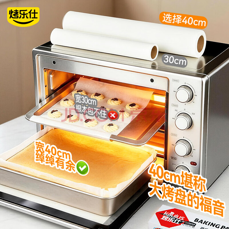 商品相册:烤乐仕硅油纸长60米*宽40cm烤箱烤盘空气炸锅专用纸加厚加宽蛋糕烘焙纸第
