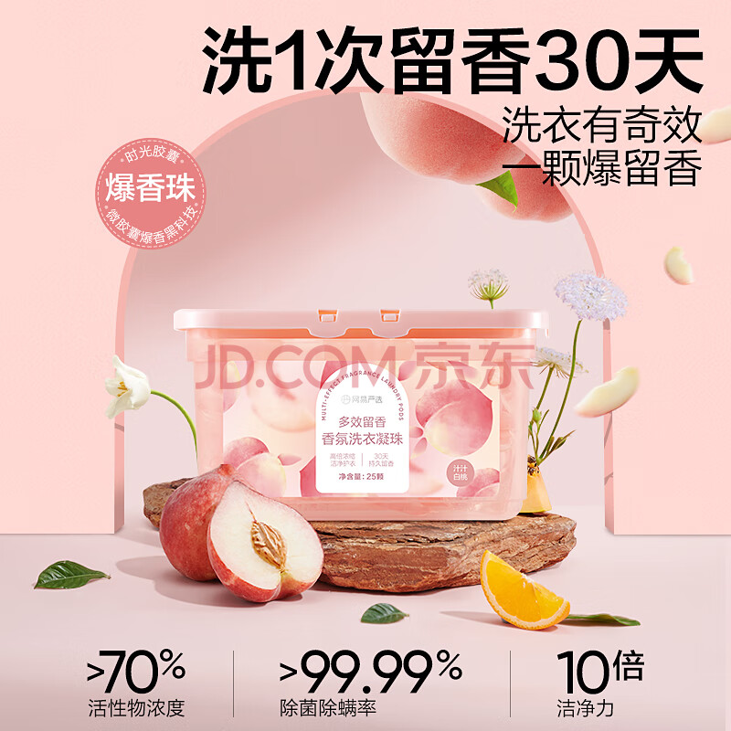 商品相册:网易严选香氛洗衣凝珠25颗 三腔 8倍清洁力浓缩洗衣液 七效合一多效留香第