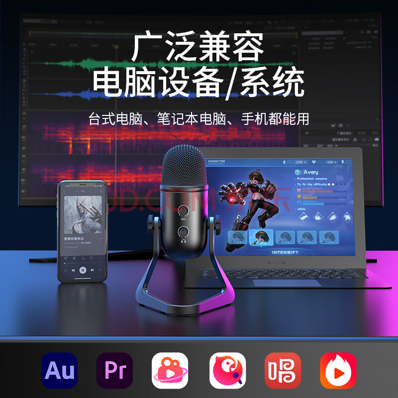 商品相册:FIFINE麦克风手机电脑话筒桌面会议网课主播游戏k歌直播桌面专业录配音可监听电容降噪有线usb收音麦k678第