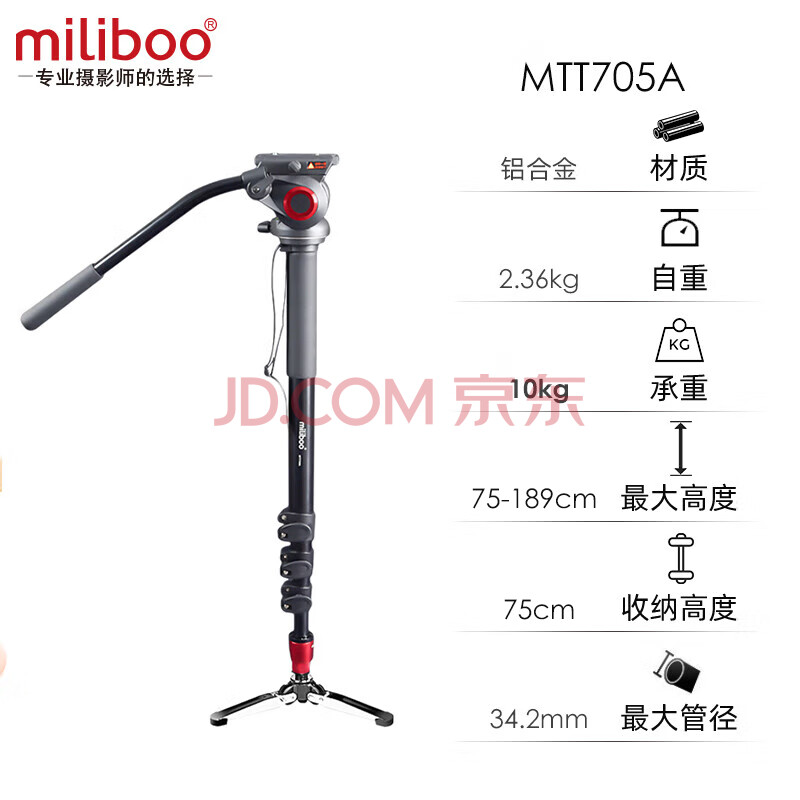 商品相册:miliboo米泊MTT705A铝合金相机独脚架 单反DV摄像机单脚架 摄影支架脚架 带液压云台套装第