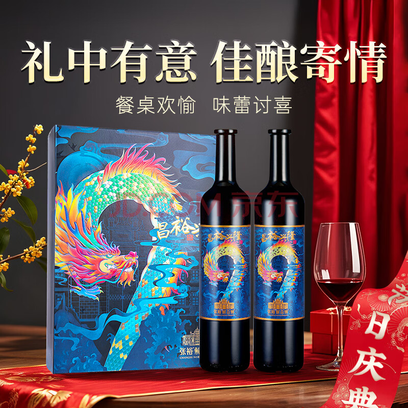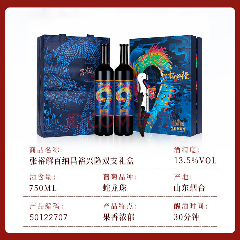 商品相册:张裕(CHANGYU)解百纳昌裕兴隆蛇龙珠干红葡萄酒双支红酒礼盒赠海马刀年货送礼第