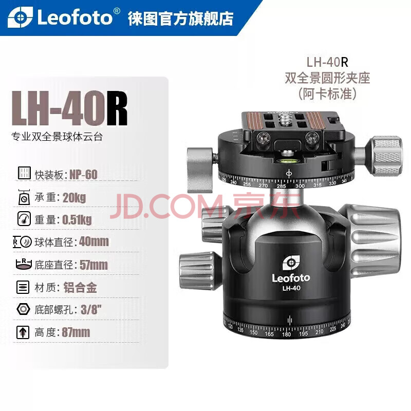 商品相册:徕图(Leofoto)云台 360度双全景夹座摄影摄像微单单反相机轻便稳定横拍竖怕专业球形云台 LH-40R第