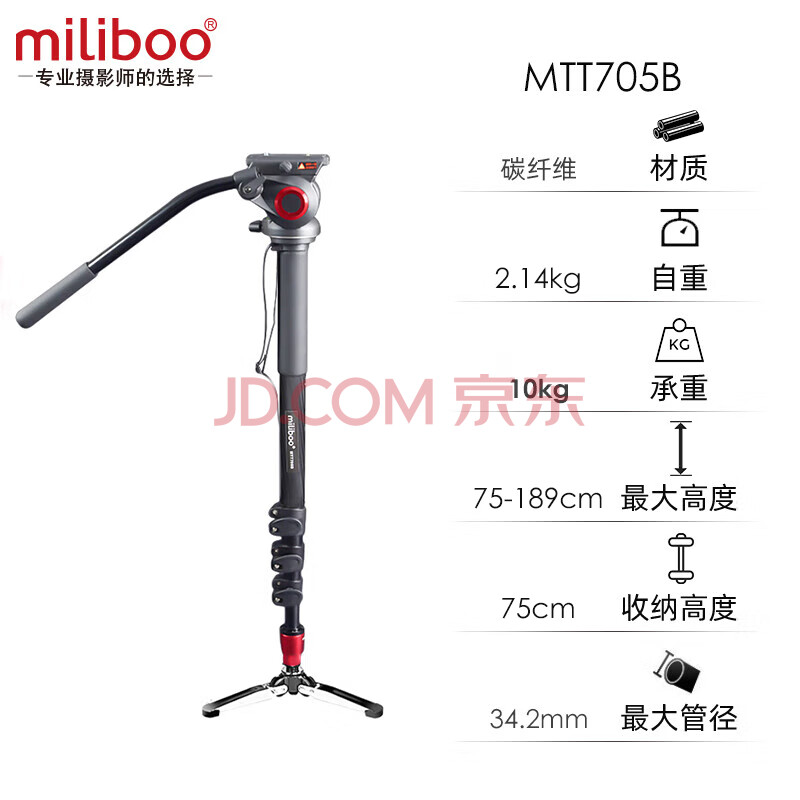 商品相册:miliboo米泊MTT705B碳纤维独脚架单反相机摄像机单脚架 带液压云台套装第