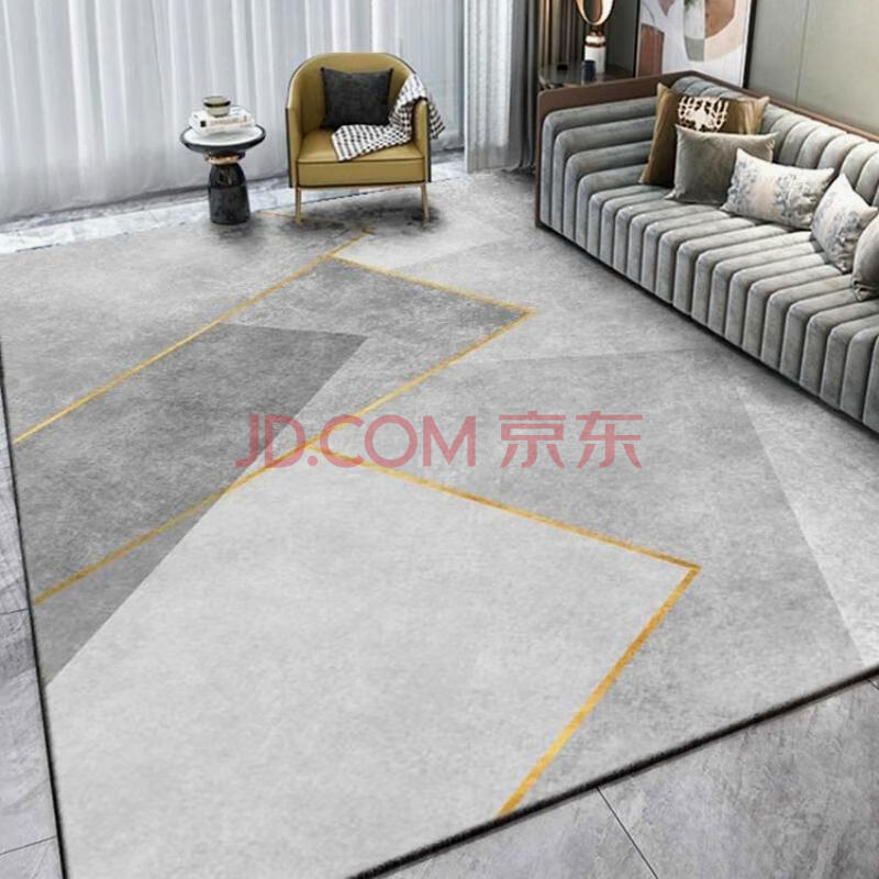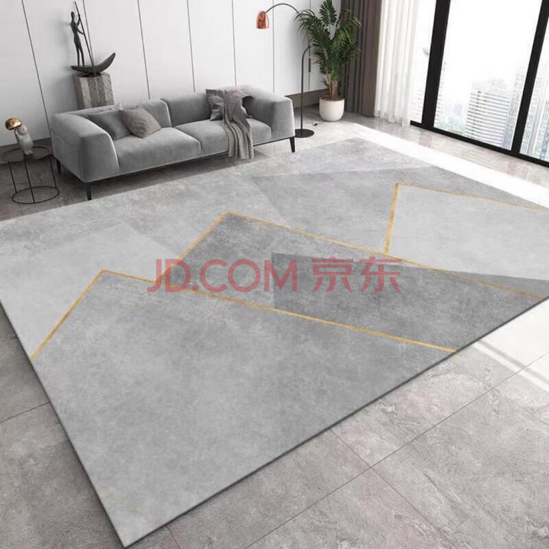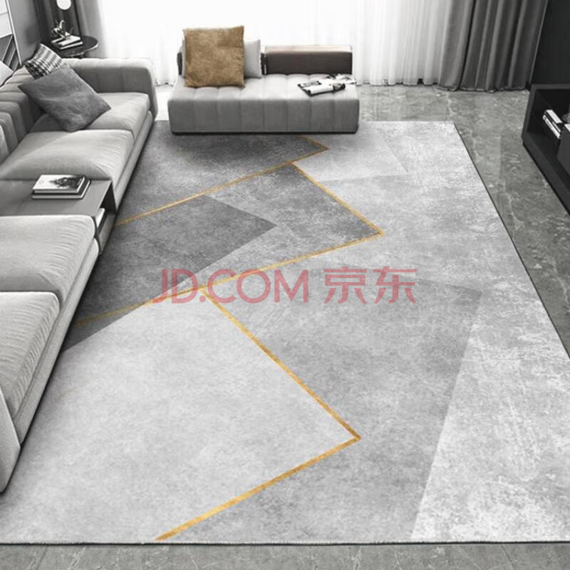 商品相册:梦蜓水晶绒客厅地毯 耐脏防滑易打理 轻奢金线 简约灰 200*300cm第