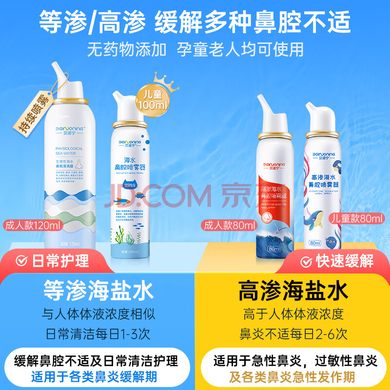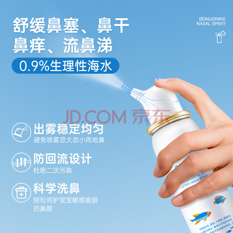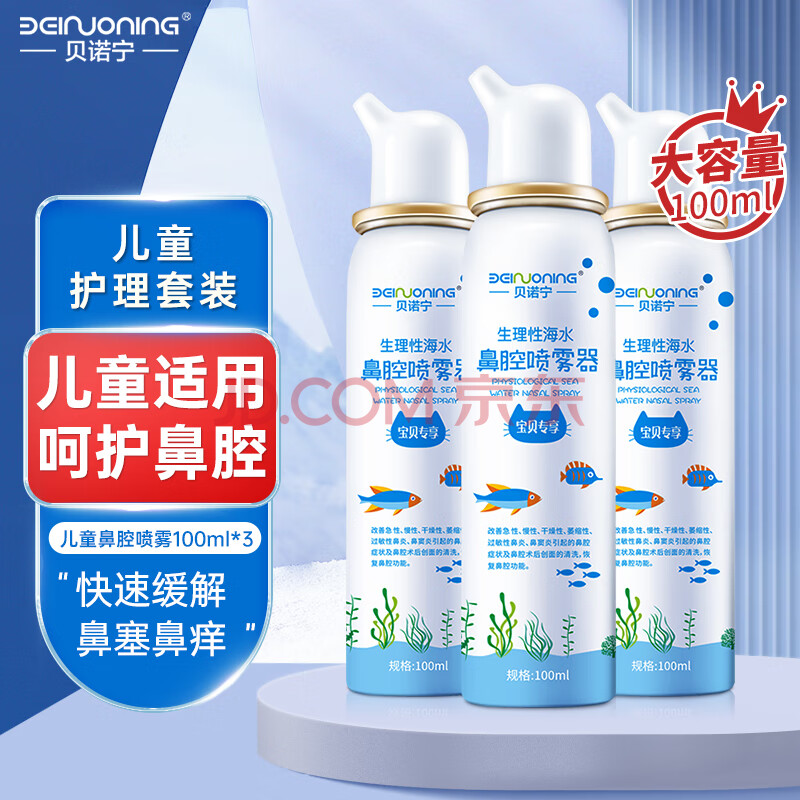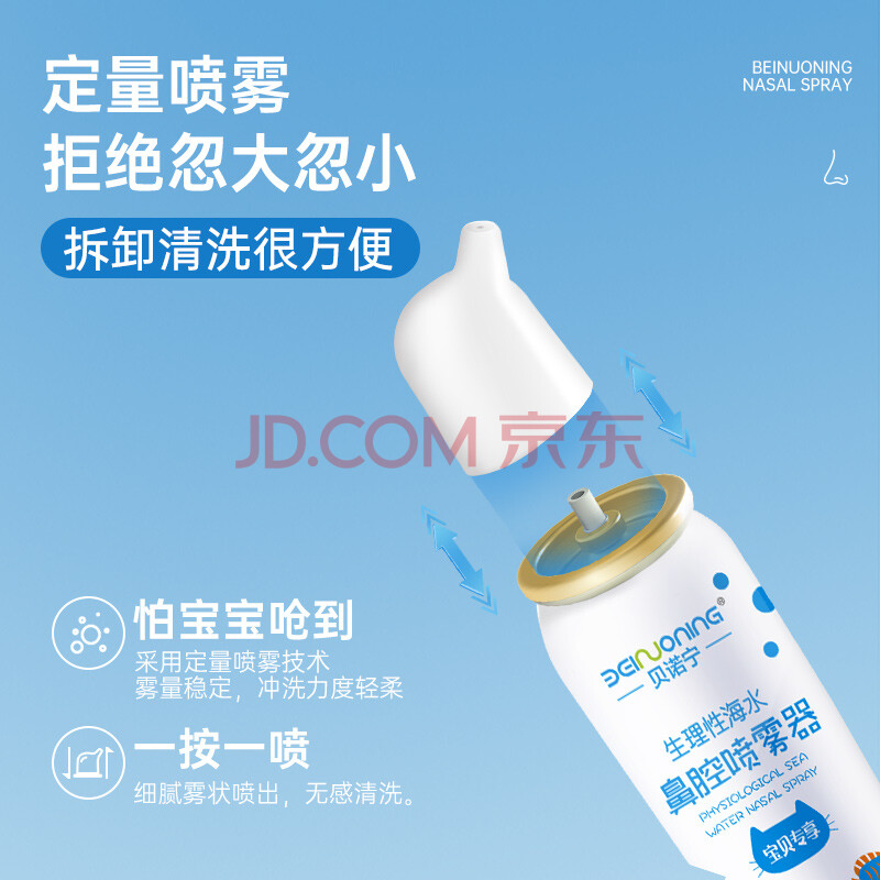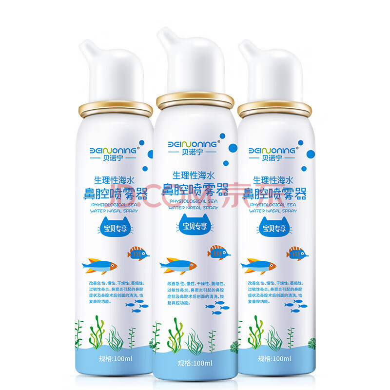 商品相册:贝诺宁海盐水鼻喷雾生理盐水清洗鼻器鼻炎喷剂婴儿童鼻腔冲洗器100ml*3第1张/共9