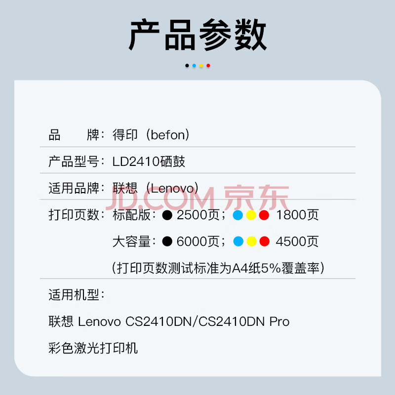 商品相册:得印 LD2410硒鼓四色套装联想CS2410DN硒鼓适用联想Lenovo CS2410DN CS2410DN Pro打印机粉盒碳粉盒墨粉盒硒鼓第