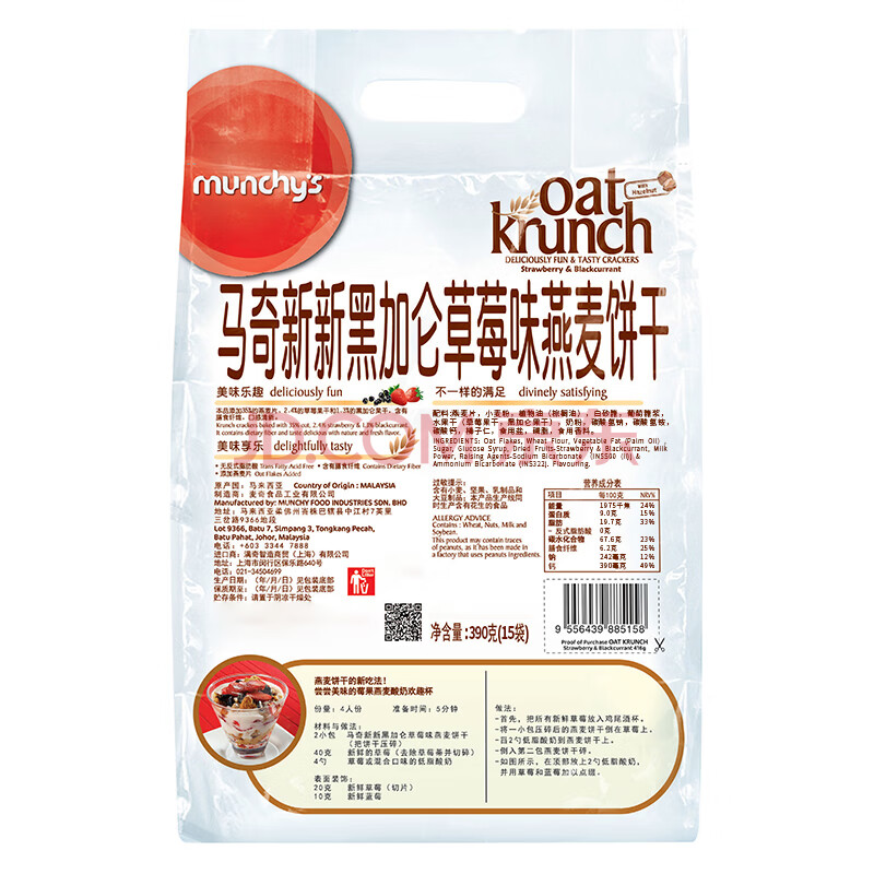 商品相册:马奇新新马来西亚进口水果味燕麦饼干粗粮代餐零食早餐年货390g独立小包第