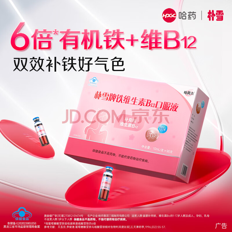 商品相册:哈药朴雪牌铁维生素B12口服液90支女士铁剂孕妇补铁好气色礼盒第