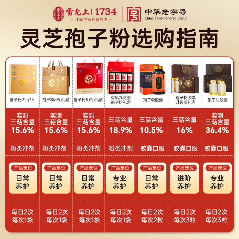 商品相册:雷允上 【加赠22g】破壁灵芝孢子粉88g保健营养补品送长辈术后免疫力第1张/共7