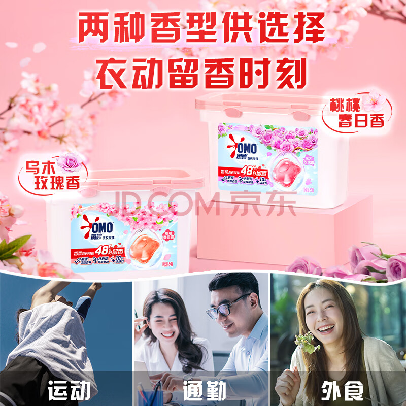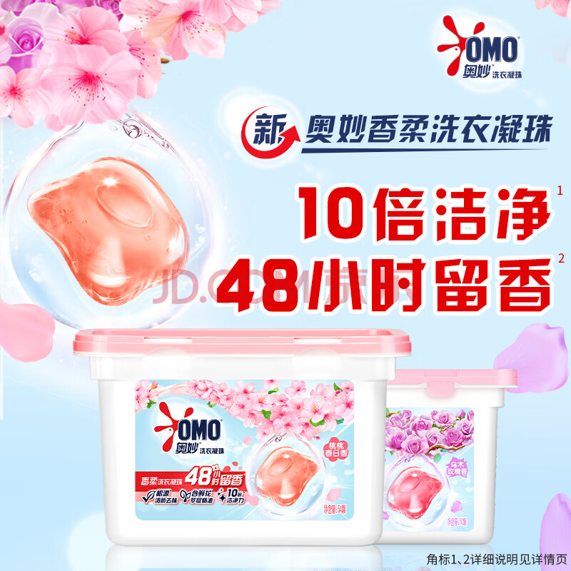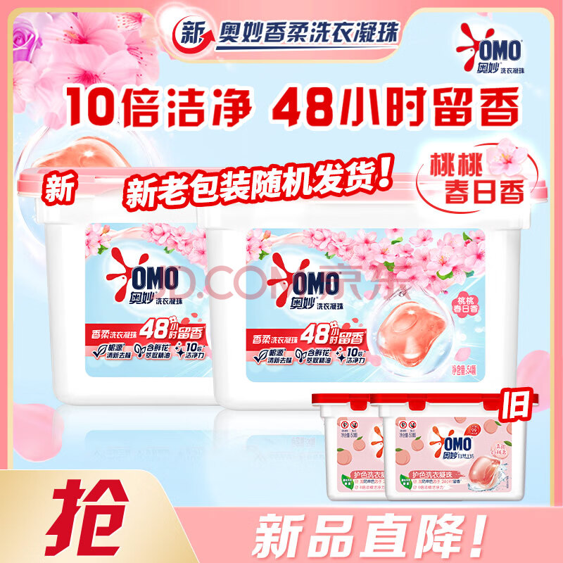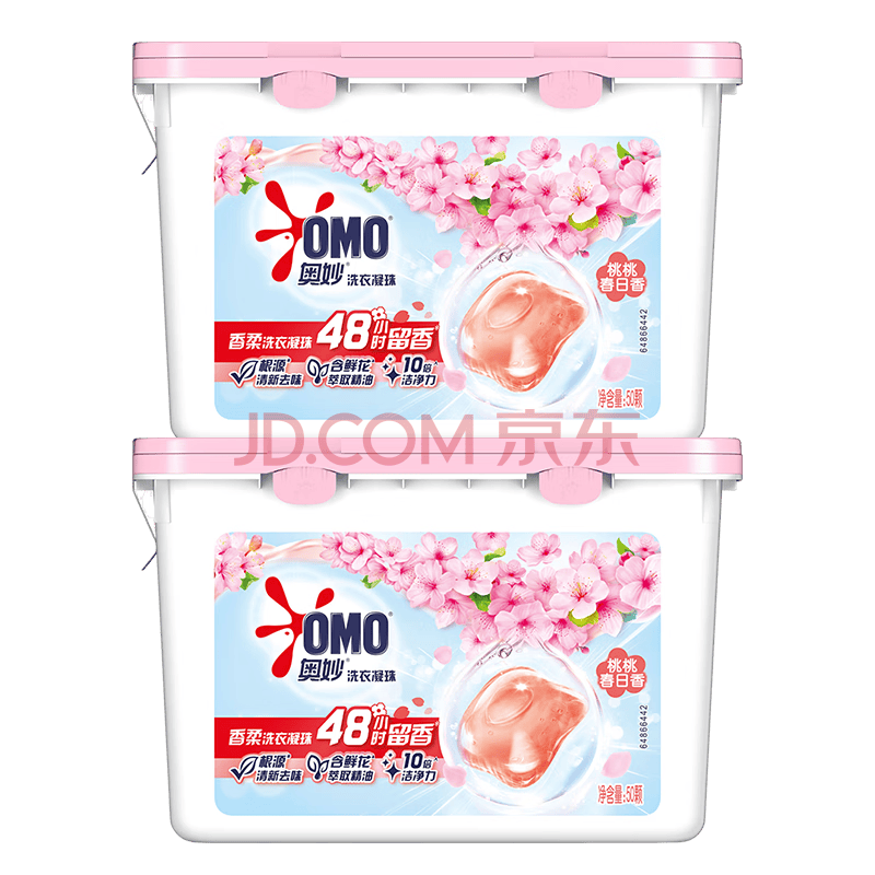 商品相册:奥妙香柔洗衣凝珠春日桃桃100颗(2盒)单腔浓缩洗衣液 48h留香第