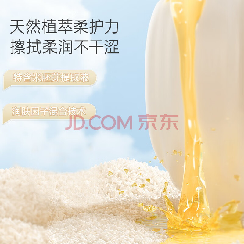 商品相册:子初米胚芽洗脸巾80抽*3包干湿两用柔软亲肤擦脸巾手口加大加厚大包装第