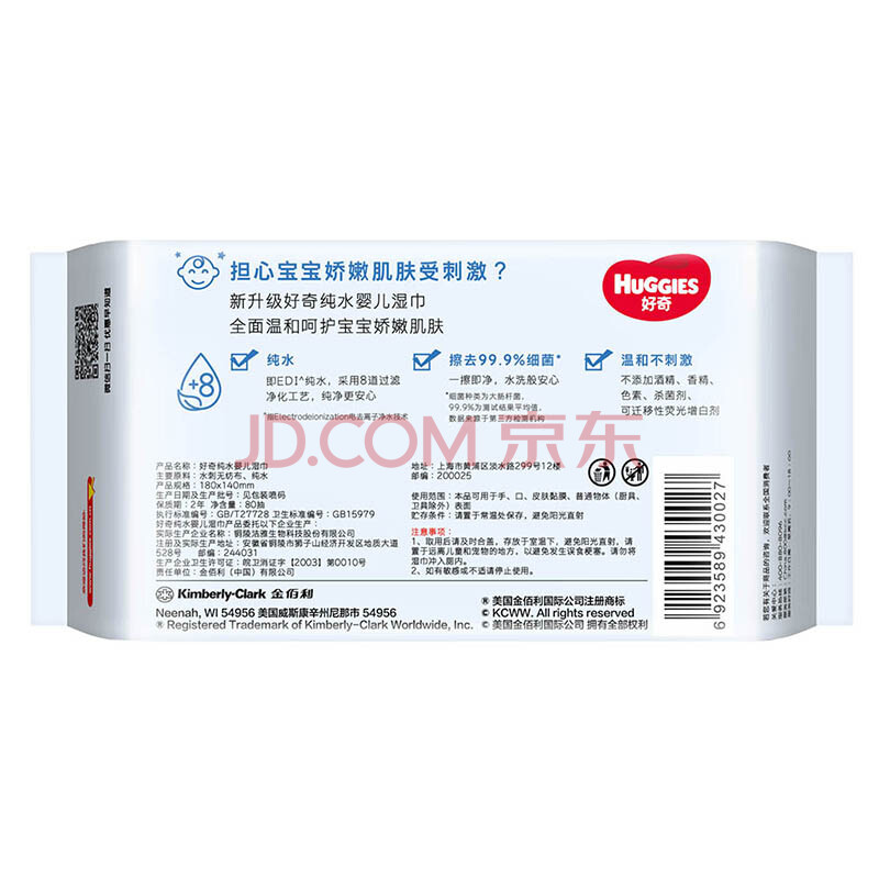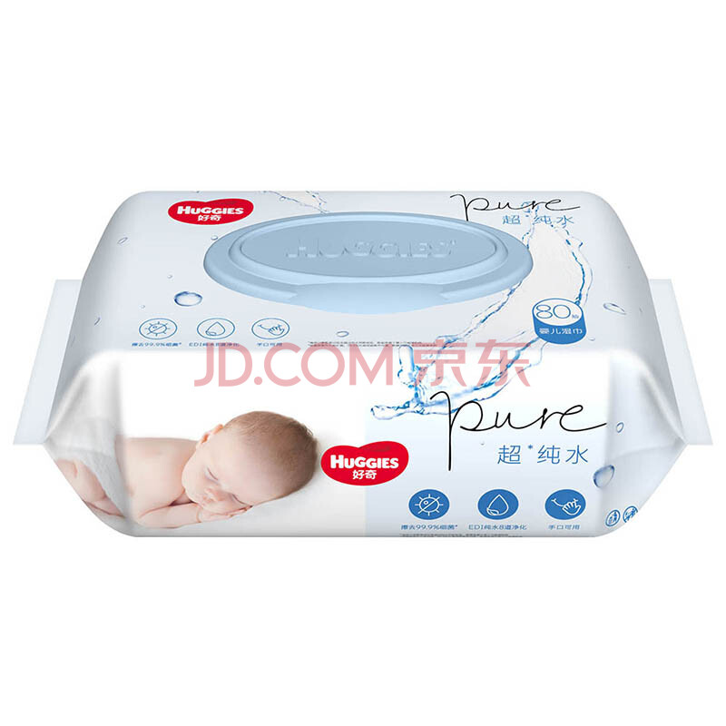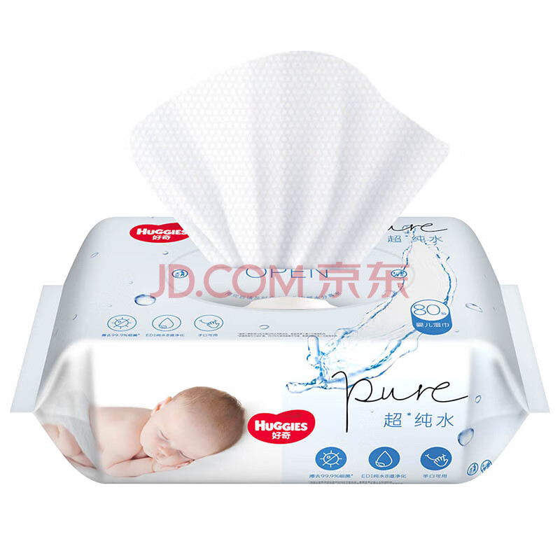 商品相册:好奇(Huggies)纯水湿巾80抽单包婴童手口可用擦去99.9%细菌去油污消毒便携第