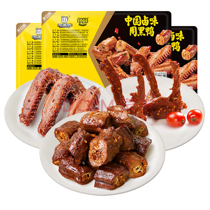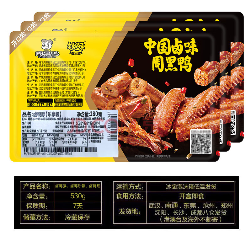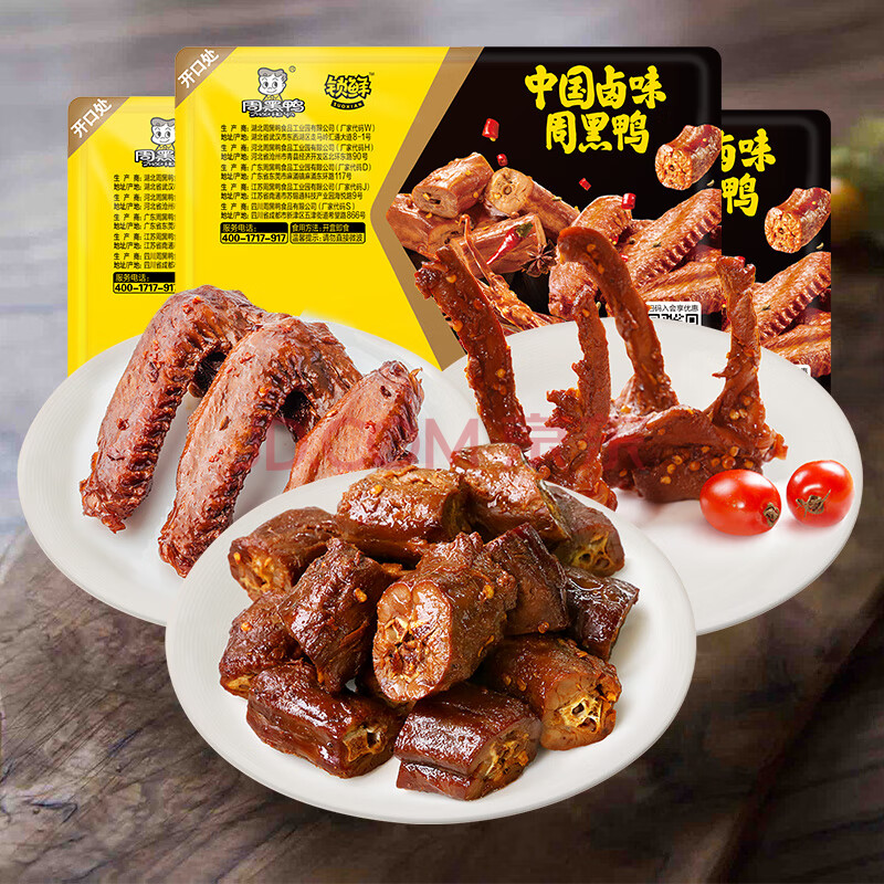 商品相册:周黑鸭 脖锁翅3盒530g 鸭脖180g锁骨190g鸭翅160g 锁鲜甜辣卤味组合第