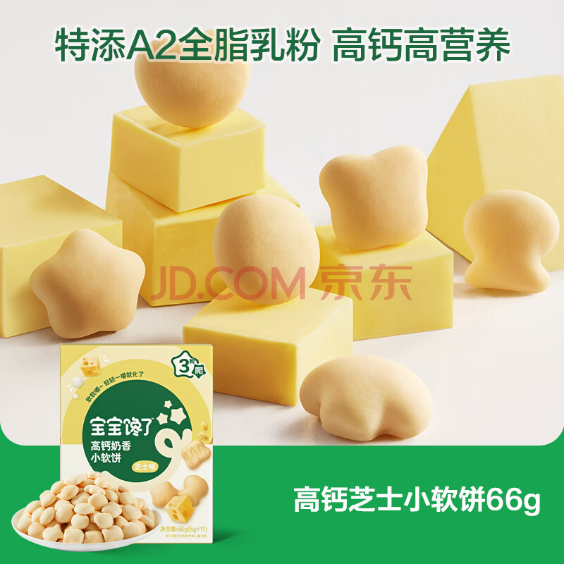 商品相册:宝宝馋了高钙芝士饼干66g儿童零食小软饼无添加白砂糖采用澳洲芝士第