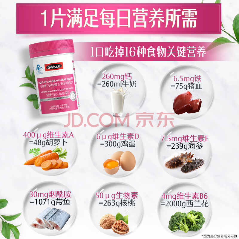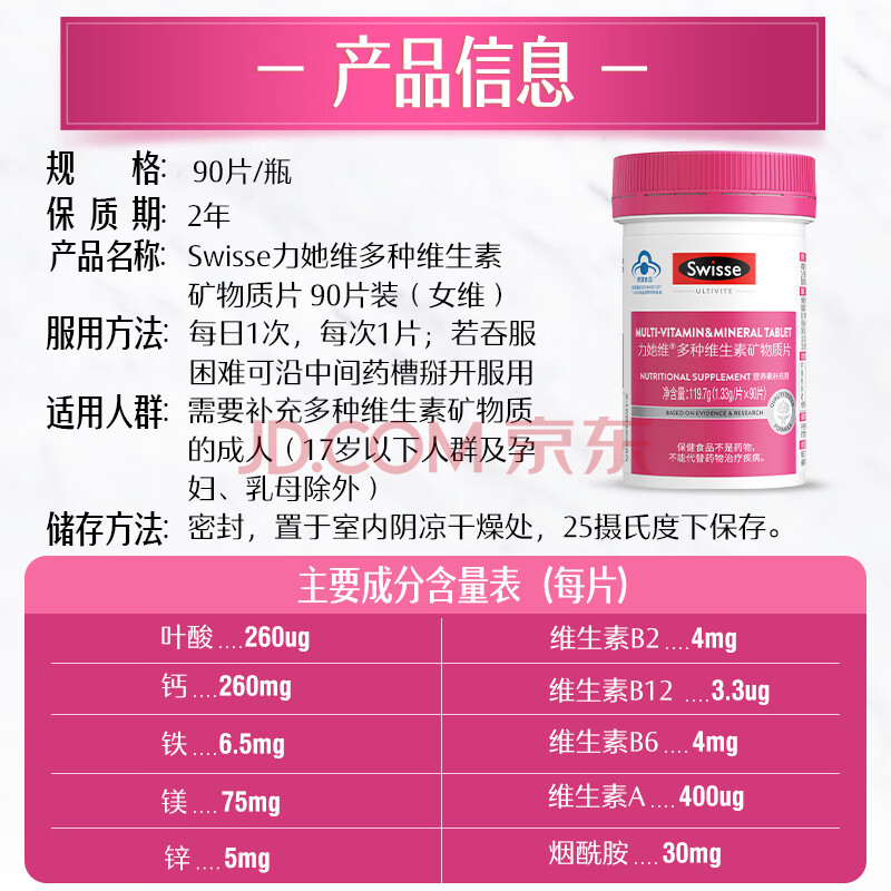 商品相册:Swisse斯维诗力她维女士复合维生素矿物质片 含维生素B族维D维E维A 90片第