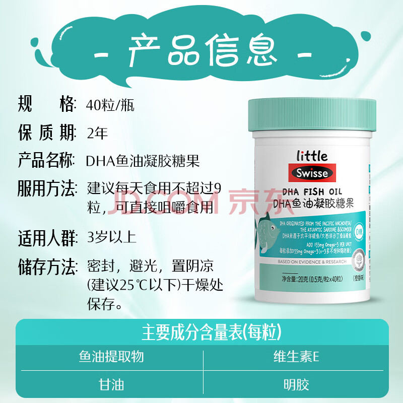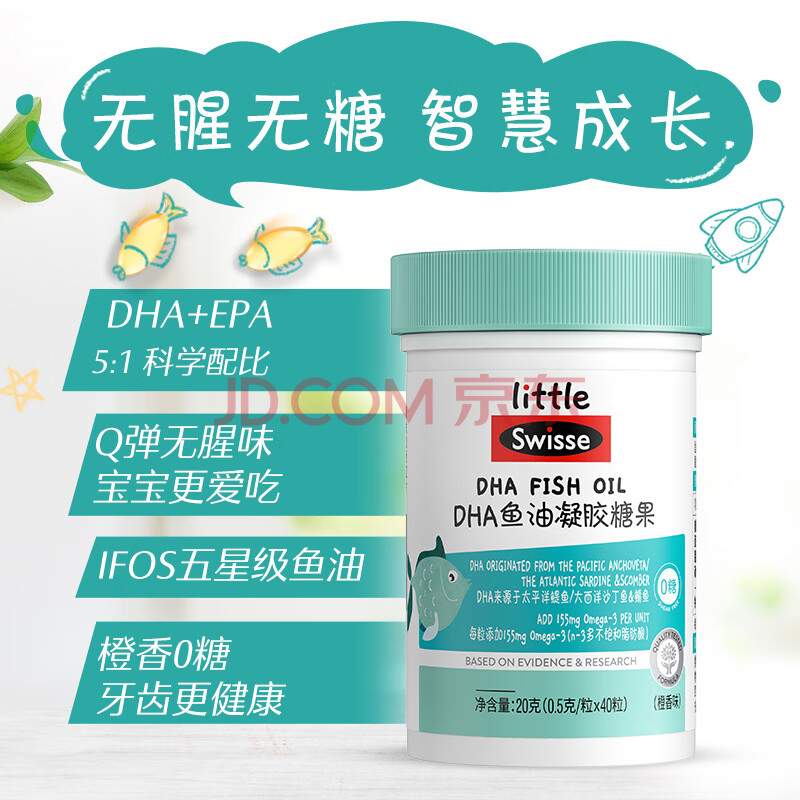 商品相册:Swisse小小斯维诗 DHA鱼油软糖 含EPA补眼脑 无腥味 3岁+儿童适用 40粒第
