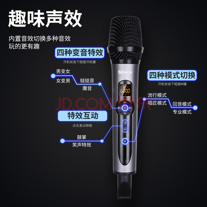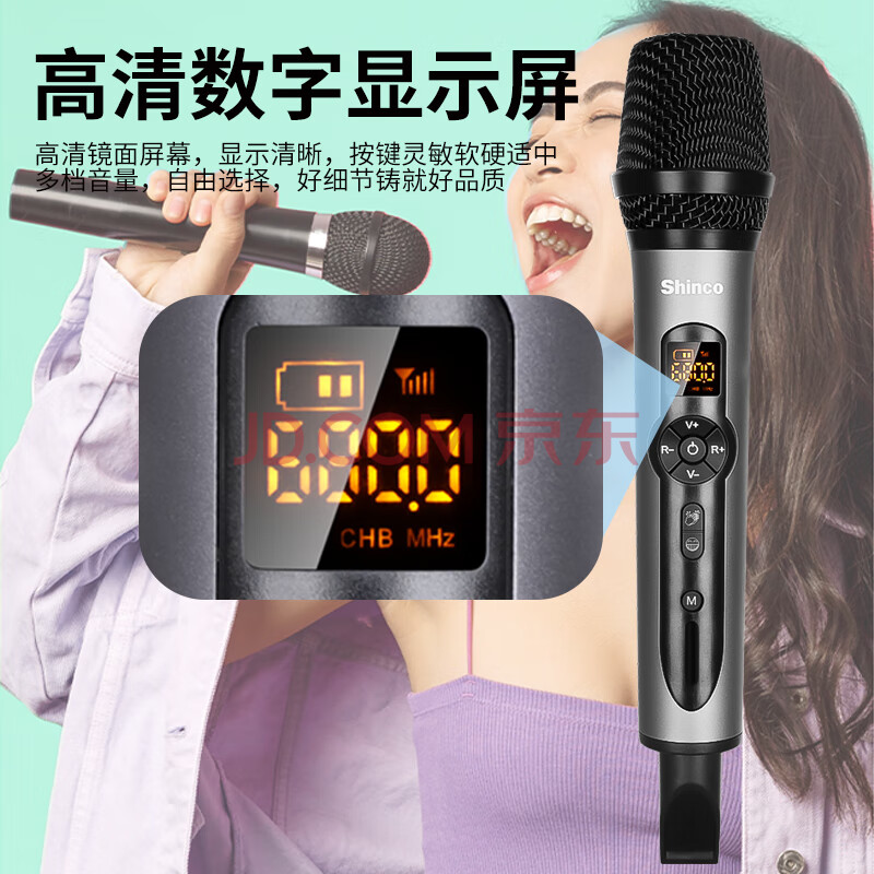 商品相册:新科(Shinco)H36手持麦克风话筒专业美声自动降噪带显示屏专用教学演出舞台主持家用KTV带接收器第1张/共5