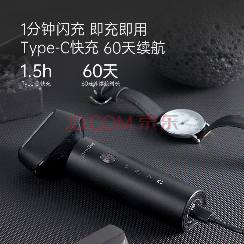 商品相册:小适(showsee)电动往复式三刀头【性价比TOP】剃须刀净剃快速全身水洗便携刮胡刀送男友送父亲生日礼物 F601-BK第