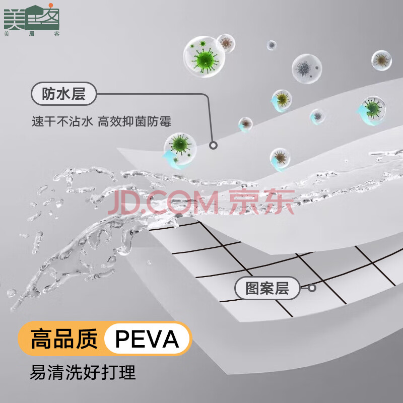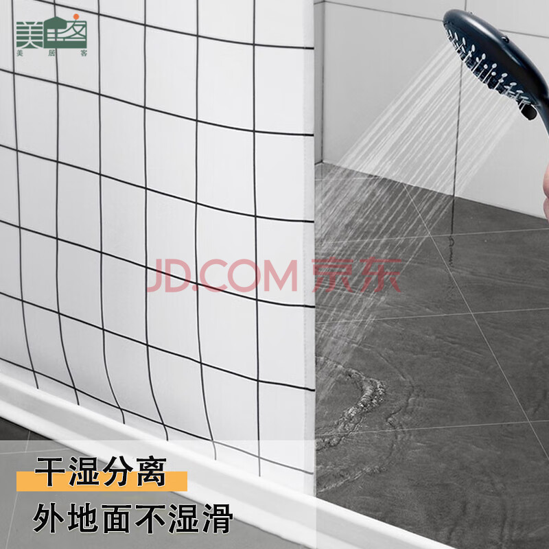 商品相册:美居客干湿分离浴帘加厚PEVA浴室隔断帘防水帘子淋浴挂帘1.5*2.0M(雅白)第