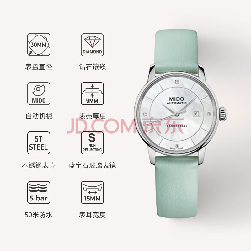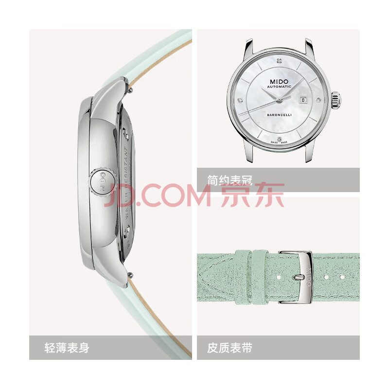 商品相册:美度(MIDO)瑞士手表 贝伦赛丽 马卡龙 一表五带 时尚优雅 机械皮带女表第