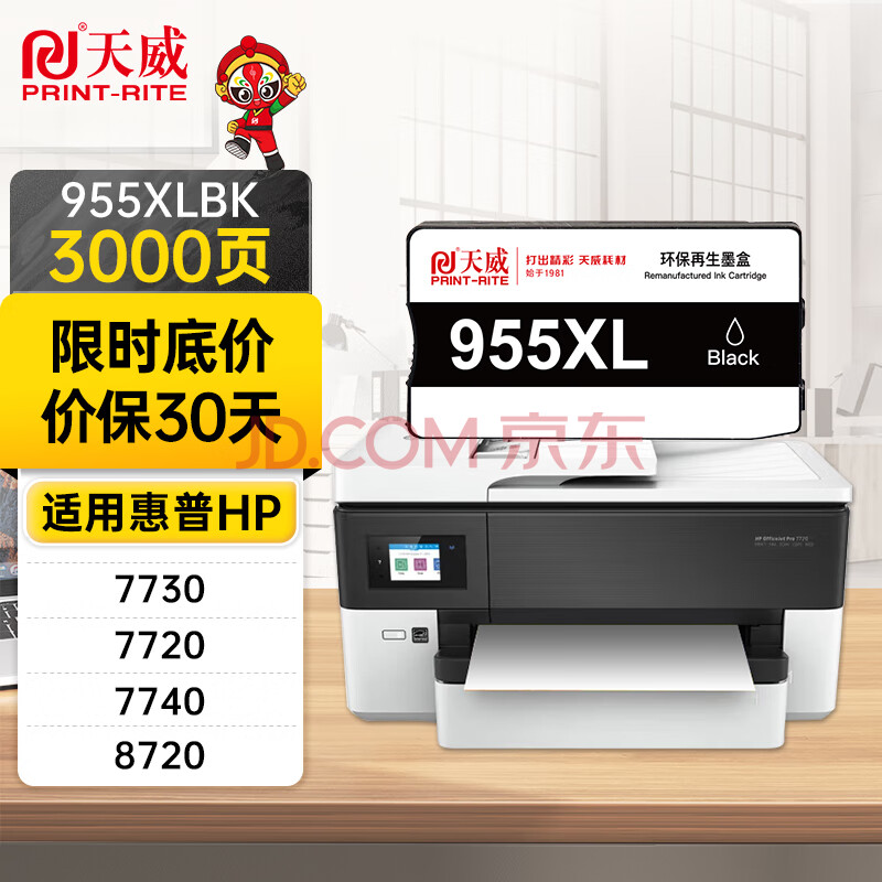 商品相册:天威955XL墨盒 适用惠普7720 7730 7740 8710 8720 8210打印机墨盒8216 8725 8730 8740 hp955黑色大容量升级第