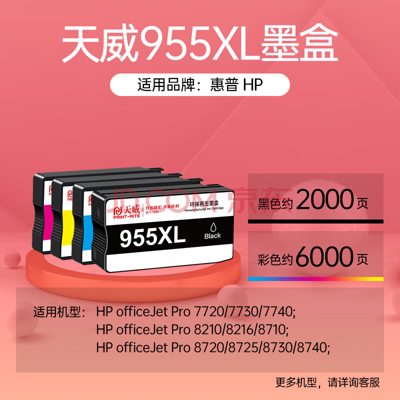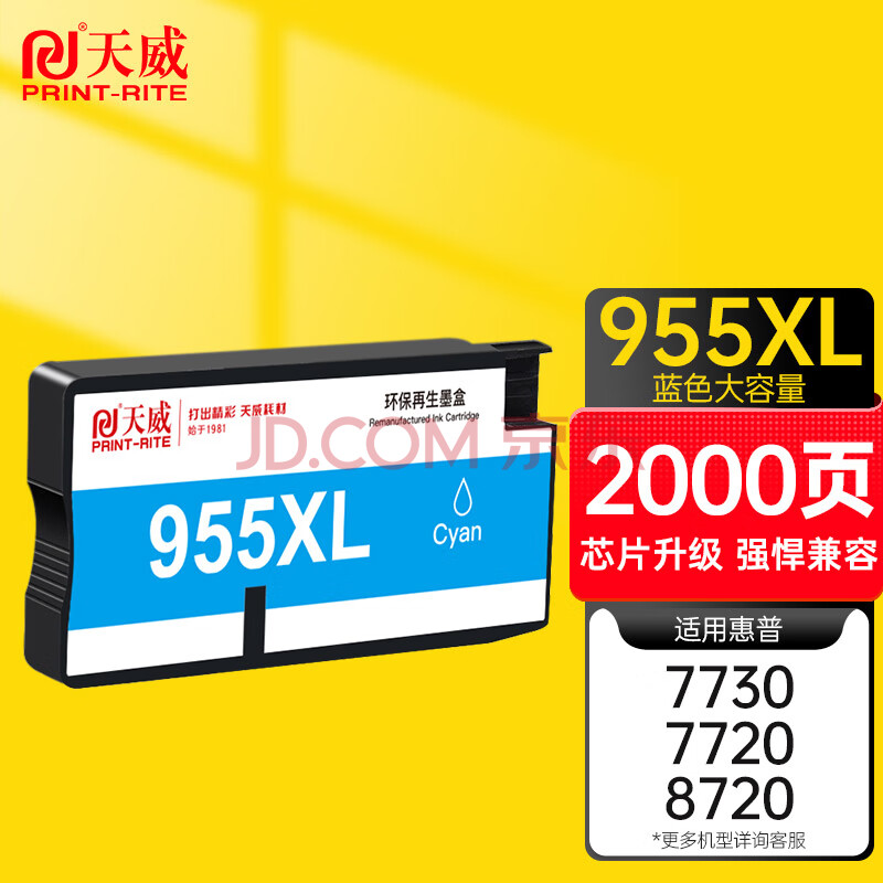 商品相册:天威955XL墨盒 适用惠普7720 7730 7740 8710 8720 8210打印机墨盒8216 8725 8730 8740 hp955青色大容量升级第