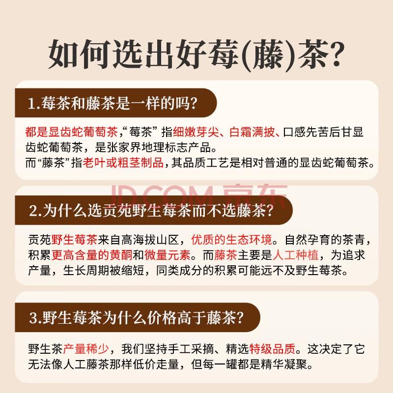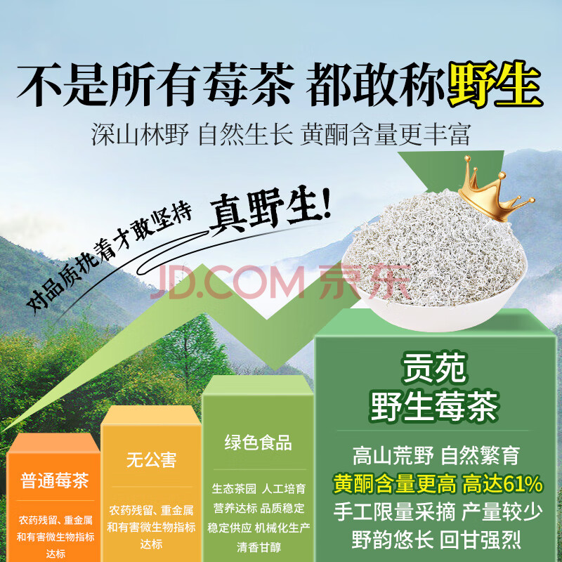 商品相册:贡苑张家界正宗野生莓茶 头采新茶藤茶龙须芽尖特级永高山顺霉茶55g第
