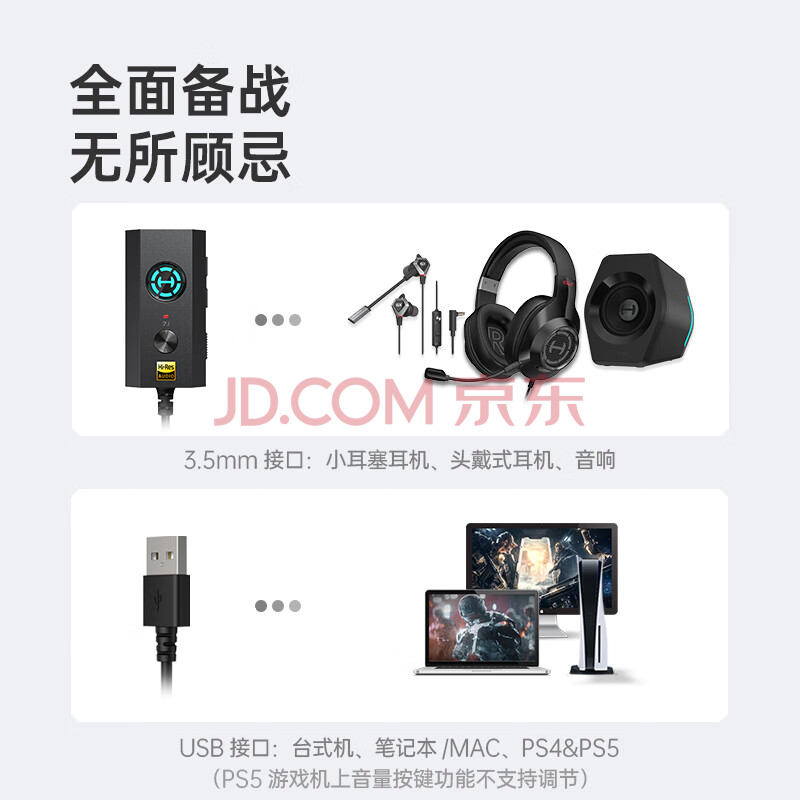商品相册:漫步者(EDIFIER)HECATE GS04 USB转3.5mm外置7.1游戏声卡耳机音频转换头适用台式笔记本电脑PS4/5接耳机麦克风音响第