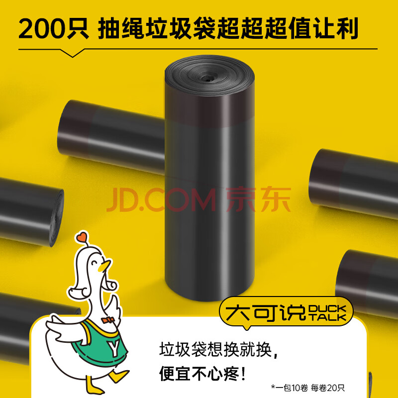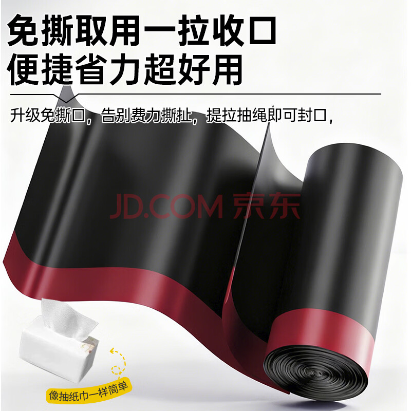 商品相册:简丫垃圾袋抽绳式黑色45*50cm200只0.9丝免撕大号家用手提穿绳厚塑料第
