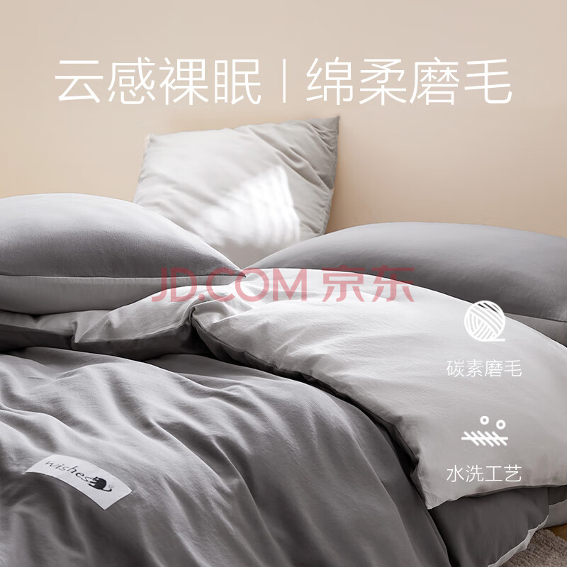 商品相册:网易严选日式裸眠亲肤磨毛三件套床单学生宿舍用酷灰色1.2m床/1.5mx2m被芯第