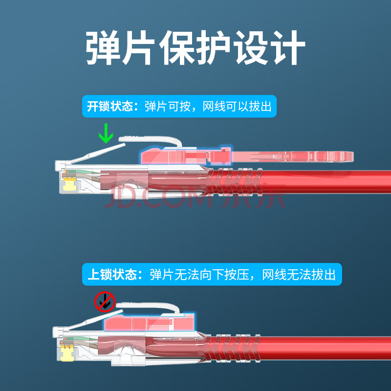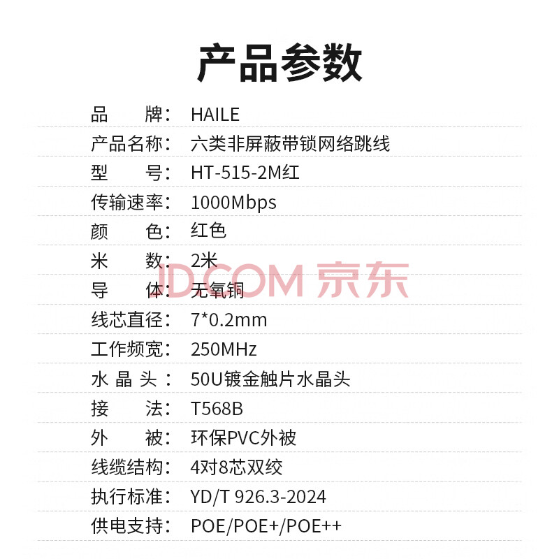 商品相册:HAILE海乐 六类网线非屏蔽带锁跳线 HT-515-2M红 红色2米第