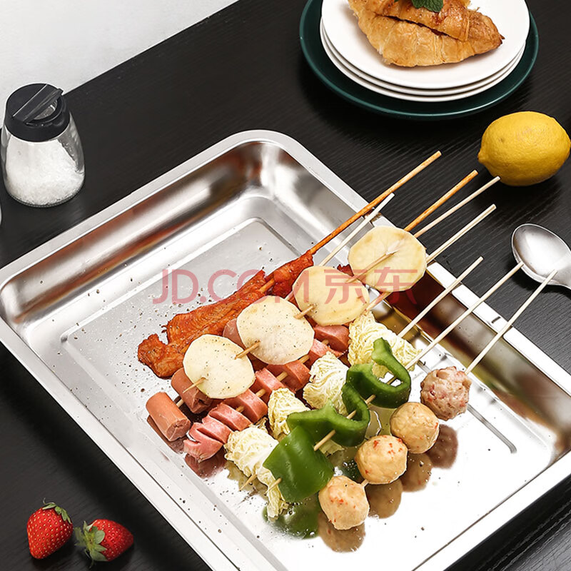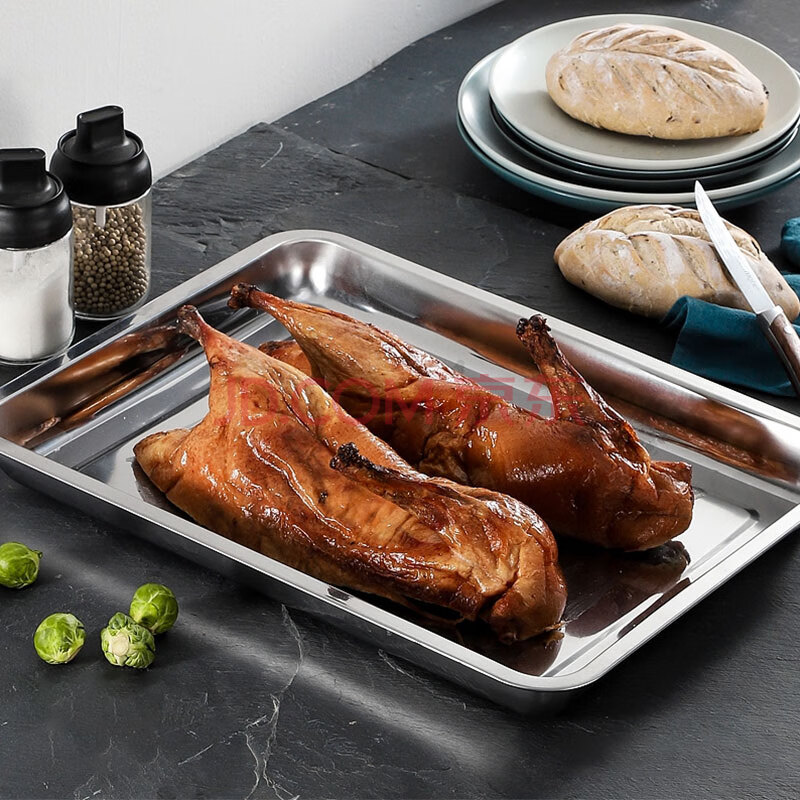 商品相册:有质不锈钢盘子托盘长方形烤箱盘烧烤盘烤鱼盘32*22两只装第