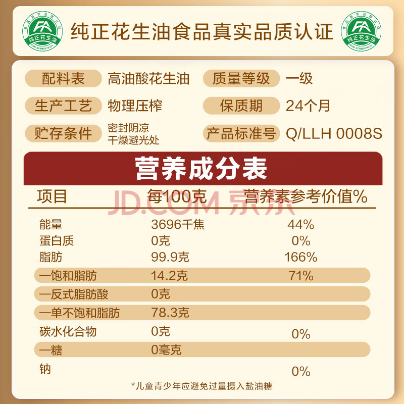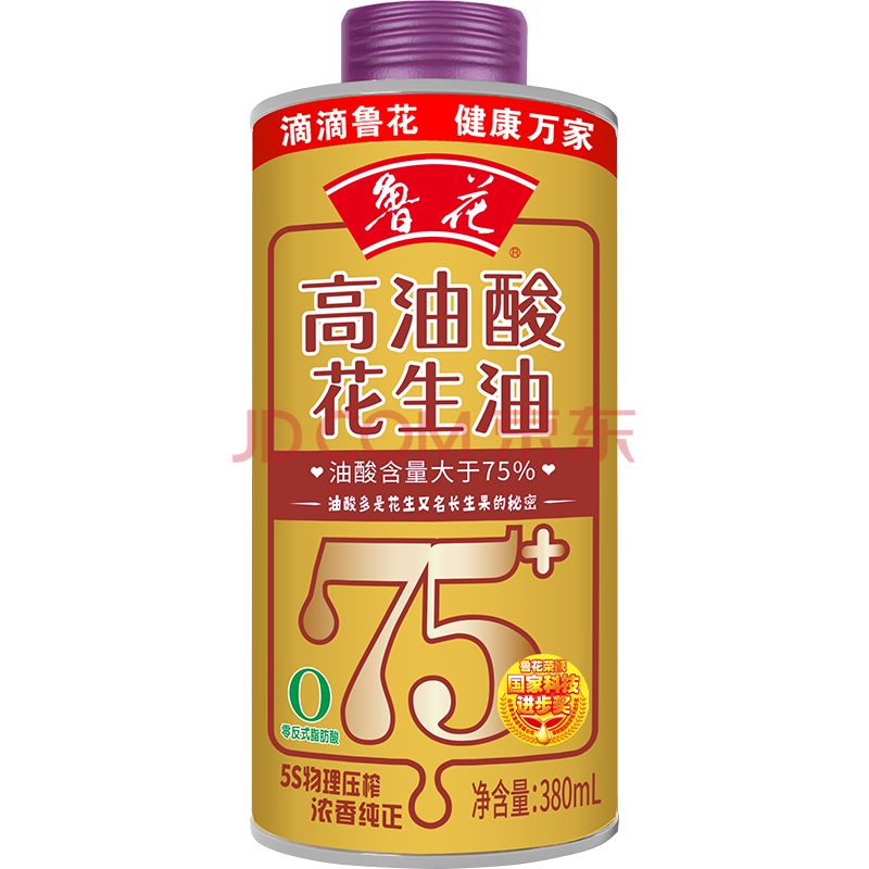 商品相册:鲁花【保真花生油】高油酸花生油380ml (铁罐)油酸含量大于75%第