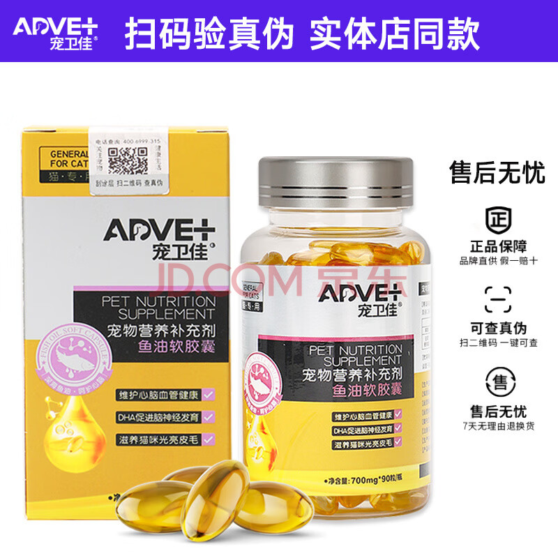 商品相册:宠卫佳(AdVet)猫咪鱼油宠物猫鱼油卵磷脂猫咪用宠物鱼肝油猫咪掉毛吃鱼油软胶囊第