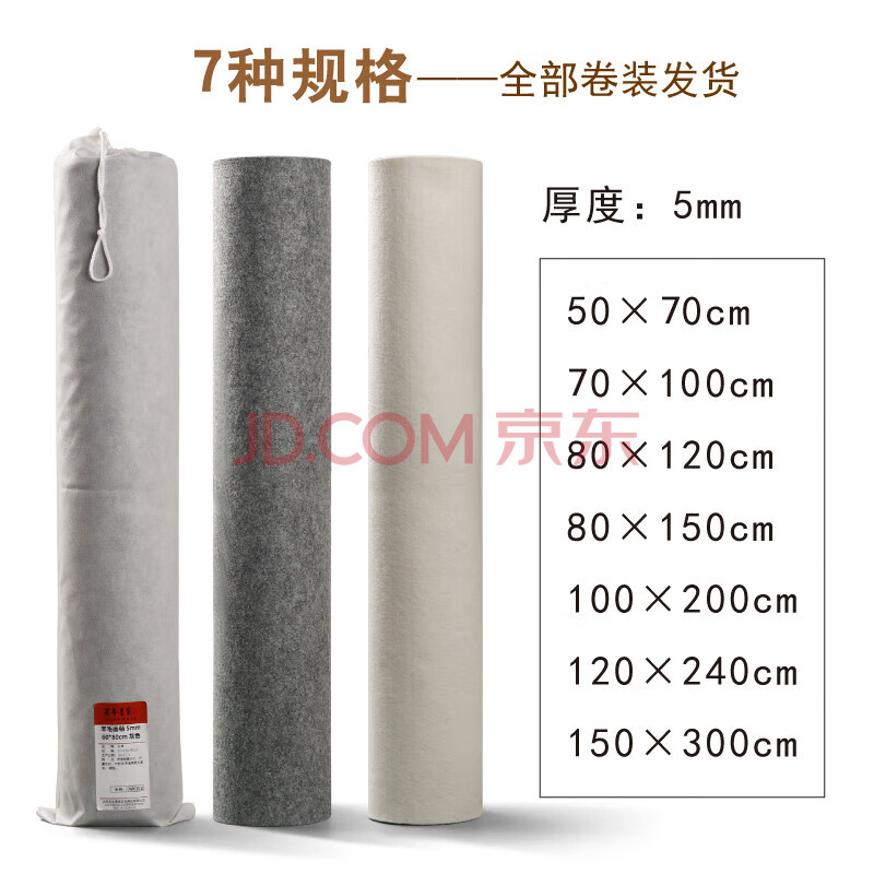 商品相册:漢墨 羊毛毛毡垫 书法国画耐磨加厚灰色150*80羊毛毛毡 文房四宝写毛笔字毛毡布桌布画毡第